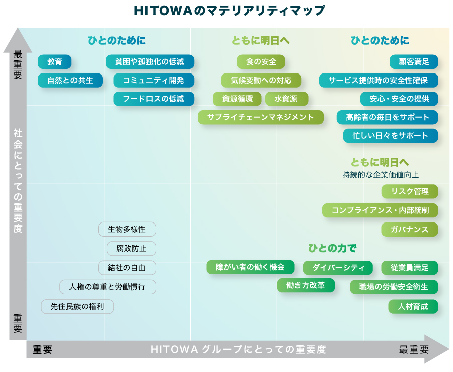 サステナビリティ委員からの議論・検討を経て、2022年7月、HITOWAグループのマテリアリティを特定・決定しました。